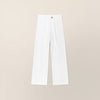 Woman wearing Marame High-Waisted Smart Trousers in White Cream, closeup.