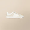 Marame Smart Leather Contrast Trainers in White/Beige, closeup.